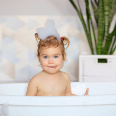 A szokásos tisztálkodás mellett jó, ha a baba kicsit élvezheti a fürdés adta játékos lehetőségeket.